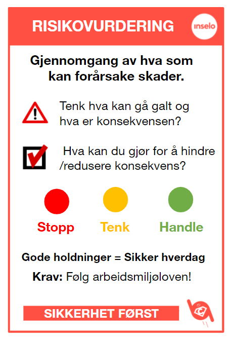 - Stopp og ta deg deg tiden til alltid å utføre en risikovurdering