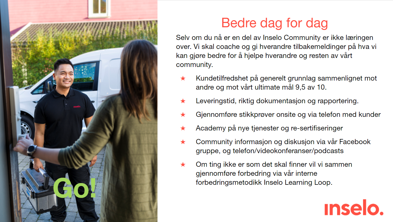 Partner-suksess handler om å skape suksess for våre partnere i samspillet med oss i Inselo. Vi jobber for å skape en bedre hverdag for våre partnere. Dette vil igjen bidra til bedre kundereiser. Vår jobb er å hjelpe dere til å bli de beste ambassadørene og kundereiseheltene der ute.